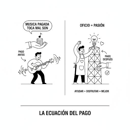 De donde yo soy se acostumbra dar un anticipo para el trabajo y al concluir la labor se liquida. Pero que pasa cuando tu oficio es tu Pasión, esa actividad es lo que más disfrutas hacer ¿la ecuación cambia? habemos algunas personas que no tenemos el oficio glamuroso pero sin embargo no gusta y disfrutamos lo que hacemos. En mi experiencia sabe mejor recibir una retribución si lo haces porque te gusta, y si además ayudas a resolver un problema, alivia una dolencia MEJOOR!!!!.
